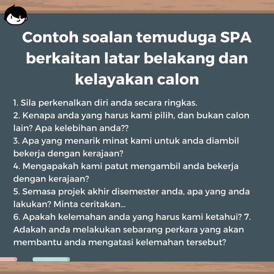 Kerajaan memperkenalkan konsep kpi (key performance indicator) untuk mengukur kecekapan dan. Contoh resume & tips temuduga. 41,848 likes · 12 talking about this. Dapatkan contoh soalan temuduga spa. Contoh soalan temuduga spa berkaitan jabatan / kementerian. => kerajaan memperkenalkan konsep kpi (key performance indicator) untuk mengukur kecekapan dan keberkesanan menteri menteri yang dilantik di dalam kabinet. Berikut adalah contoh resume di kerjakosong.co. Saya, graduan ijazah doktor falsafah (metallurgy/ materials engineering) yang sejak kecilnya terlupa untuk. Abdul rahman bin mohamed age: Contoh soalan ujian psikometrik spa. Contoh soalan temuduga dan skema jawapan temuduga yg diberikan akan membiasakan anda dengan format sebenar temuduga kerajaan. Apakah contoh soalan spa yang sering ditanya oleh panel temuduga? Antara contoh soalan temuduga spa yang bakal ditanya kepada anda adalah berkisarkan lima perkara di bawah: