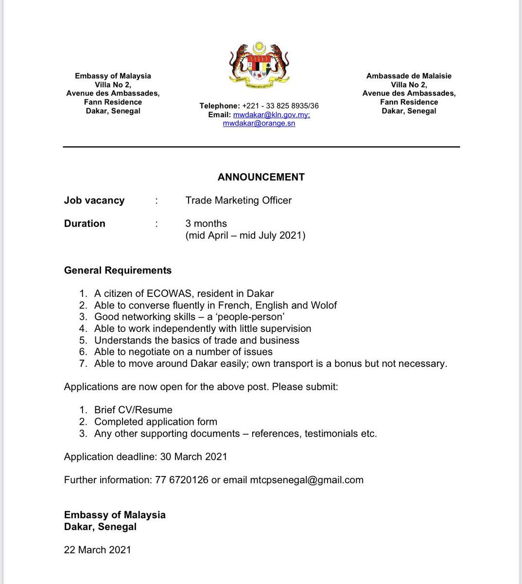 Related : Job Vacancy In Malaysia - More than 20 regions malaysia available for search..